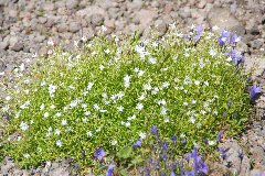 長野県松本市を西へ約50km、乗鞍高原温泉を抜けて三本滝までくると、ここからはマイカー規制。 バスとタクシーだけが標高2800m雲上の乗鞍岳畳平に向かうことができる。今年の残暑は厳しい。 下界は35℃で蒸し返すような暑さ。その暑さから逃れて天空の楽園は20℃の別世界。 その別世界には、高山植物が咲き競う世界があった。 |