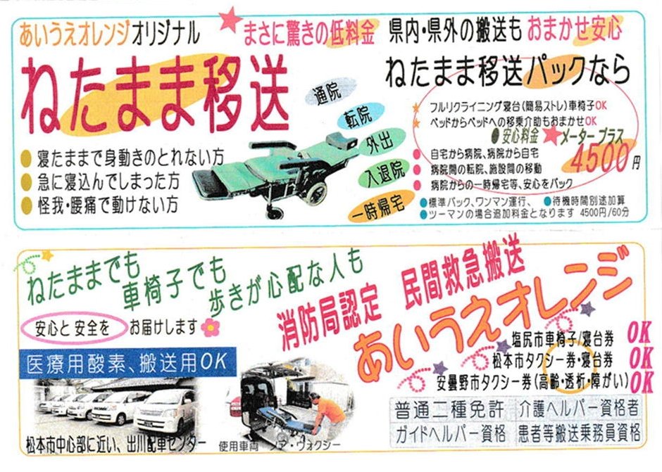 民間救急 ・ 介護福祉タクシー ・ 車いす搬送 ・ ねたまま移送