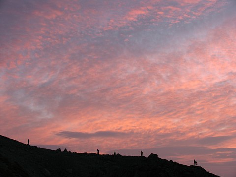 | 今日も早朝は良い天気、きれいな朝焼けが小屋の前からも見えました。 ただ、その後は急速に雲が広がり始めて8時過ぎに雨がパラパラと・・・ その後も降ったり止んだりの小康状態でしたが、 午後からは本降りの雨と強い風となってきました。 7月末の梅雨明け以降、気圧の谷に入ってショボショボと雨が降るとか、 夕立やにわか雨による一時的な激しい雨はあったが、 低気圧通過による本格的な雨は実に5週間半ぶり。 人通りもガクンと減って、なんだかちょっとホッとした気分です。 明日も一日雨降りらしい。 しっかり水を貯めて、また晴れマークの並ぶ週末を前に一休みとなりそうです。 |