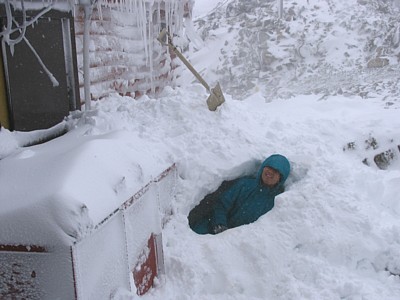 ![]() どうやら雪洞を掘っていたらしい このアホ、今夜は「ここで寝る!」と豪語しています |