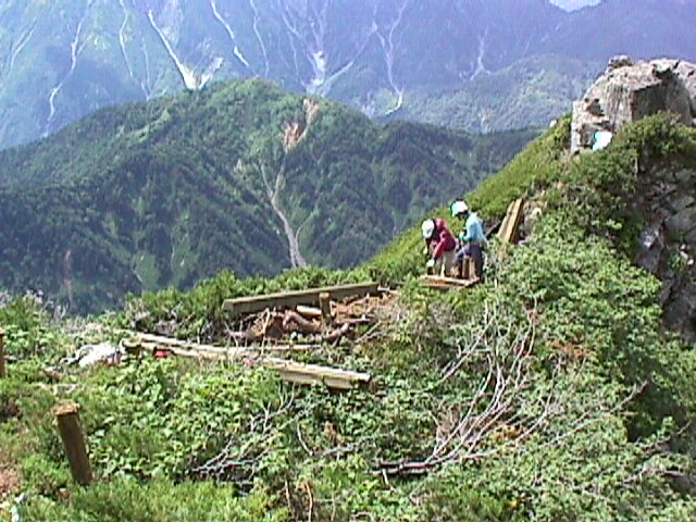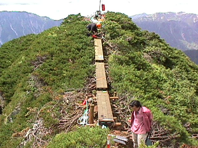 昨年8月の上高地群発地震による崩壊のため通行止めの続いていた南岳 新道の復旧工事が進み、まもなく開通となります。 地震による崩落が激しかったため槍平〜南岳間の約6割が新設の登山道 となり、中間部は南岳西尾根を通り南側は穂高滝谷、北側は南沢カール を上部から俯瞰する好展望のルートとなります。 9月上旬〜中旬には開通となり、秋山シーズンには通行が可能となります。