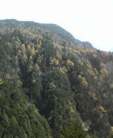 | 11月5日のひとこと 昨日11月4日は御嶽山の「田の原」まで 行ってきました。 木曽郡、王滝村へは三岳村を抜けて 行きます。 この写真はその三岳村の道中で撮った ものです。 山は紅葉で錦秋に染まり、とてもきれい でした。 如何せん携帯電話のカメラなのでお許し 下さい。 (御嶽山は雲の中に隠れていました。) |