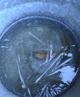 | 12月1日のひとこと 今朝は氷点下2℃ぐらいでした。 バケツに薄い氷が張っていました。 霜で家々の屋根も真っ白でした。 枯葉も草も真っ白でした。 |