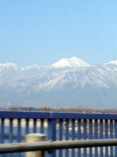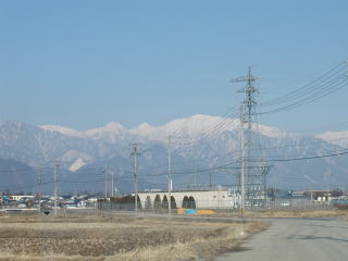 | 明科町の橋上から常念岳 → (3/7撮影) |