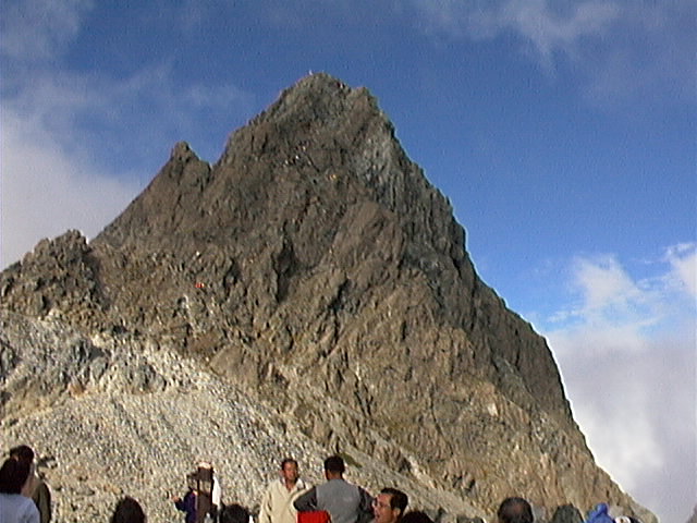 久しぶりに青空の見えた槍ヶ岳、稜線近くは紅葉も進んできましたが、槍沢のななかまどは赤い実がいっぱいついてはいますが葉はまだ青いままです。