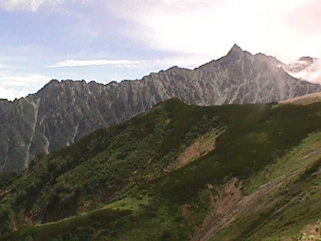 天気があまりに良いので、双六小屋まで散歩に行ってきました。 樅沢岳までは、ずっと槍が見えていました。この西鎌尾根は、霧が飛騨側からはいり やすく、朝早い時間しか槍の姿が見えにくいのですが、今日は運良く11時頃まで、槍 と北鎌尾根がたのしめました。