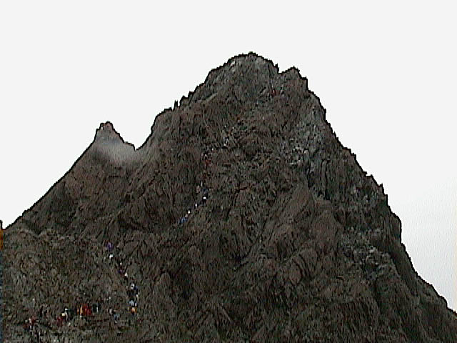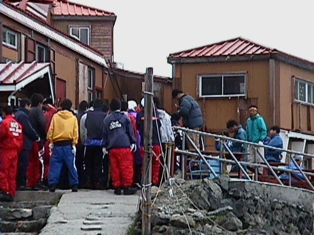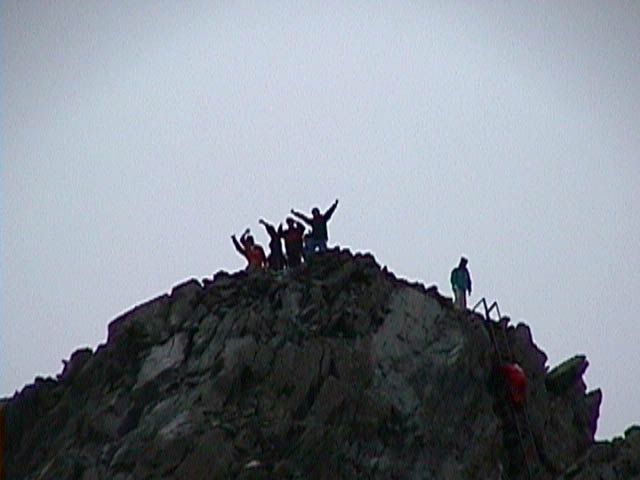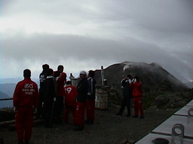 見舞われながら一向は山頂に向かいました。
