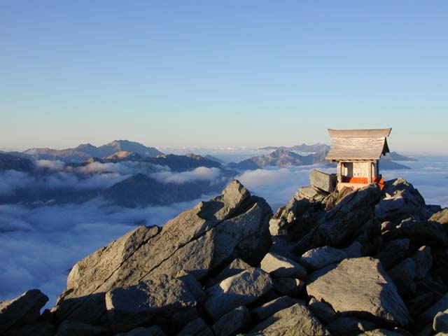 3日前までは、雪の世界であった槍ヶ岳も1日2日の大雨でほとんど融けてしまい、 久しぶりの新雪をラッセルして降りる下山かと思っていたら、とんだ当て外れ。少し残念でした。 槍の頂上に登って今シーズン最後の眺望を楽しみました。 お正月には、また何人かで登ってこようと考えていますので、 21世紀を槍ヶ岳で迎える方にはお会いできるかもしれません。