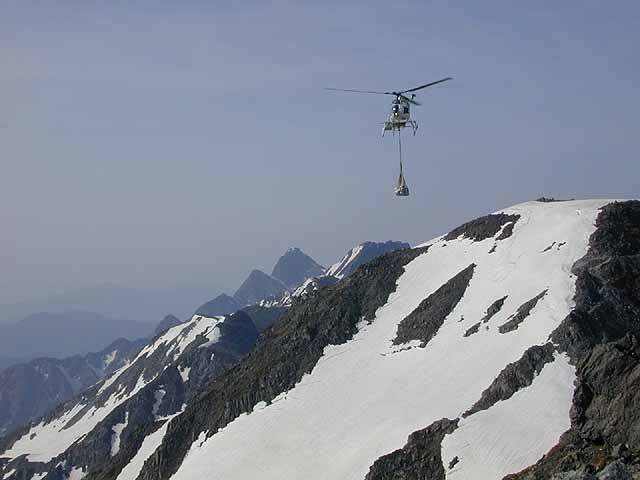 下界では、1立米5千円ほどの砂利、砂が、ヘリ代のかかる山の上では、50万円位になります。