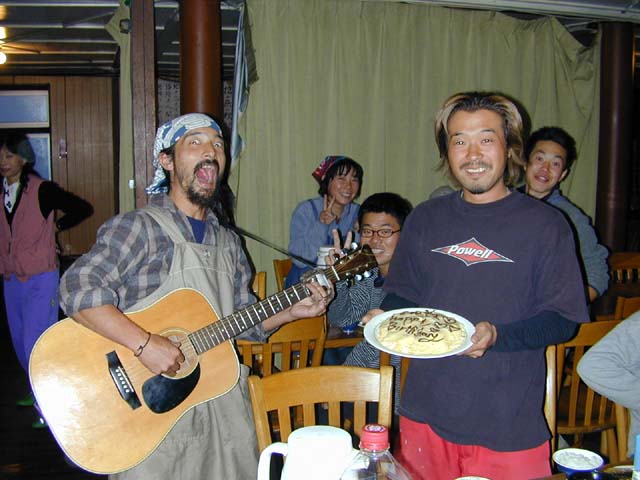 作った手作りケーキと山荘スタッフのギター演奏でお祝いをしました。