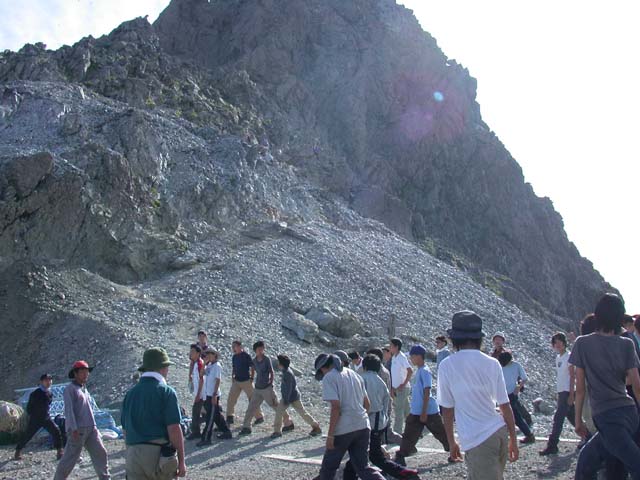 天気に恵まれ早朝に頂上を踏まれ、これから上高地まで下山をする前の準備運動を