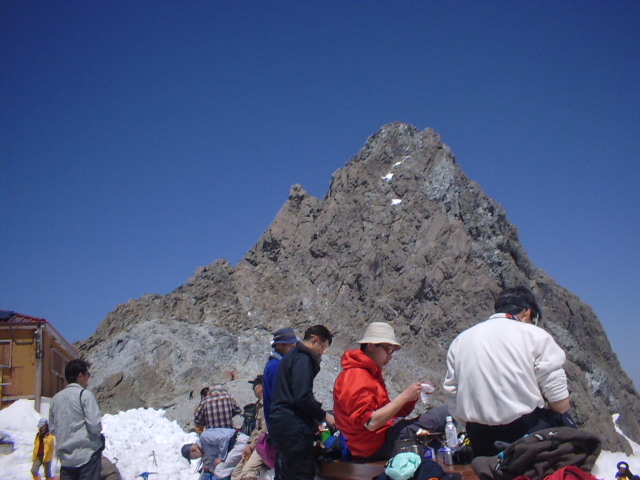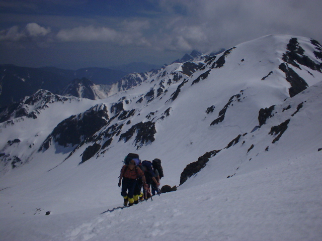山荘の受け入れ準備も、ようやく間に合いほっと一息です。 晴れた日は、気温が低くなりますので、午前中は斜面の雪も固く登り安いですが、 下りにはスリップに気をつける必要があります。 山荘周辺の登山者の方の絵を送ります。 撮影は、山口信吉、中島健です。