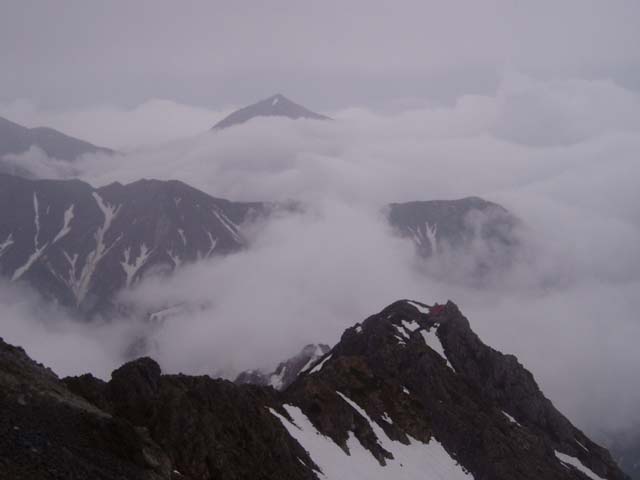 槍ヶ岳周辺も今日入梅となったようで、6時前より少し雨が降りました。 昨日から職人さんが入り、山荘の施設の修理に登ってきていましたが、お昼過ぎに 無事工事も終わり、ヘりコプターで、降りる事が出来ました。 しっとりとした墨絵のような入梅の槍ヶ岳周辺の写真を送ります。 穂苅康治