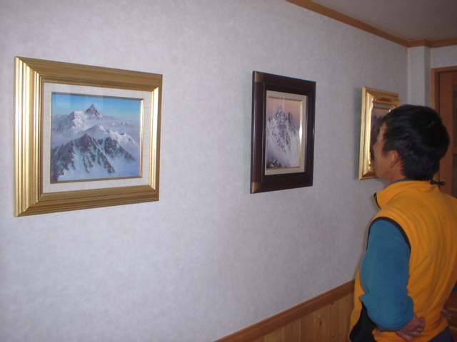 槍ヶ岳山荘では現在、山岳画展を開催中です。日本山岳画協会所属の8人の先生方の作品を19点、 山荘内談話室などに展示しております。内容は槍ヶ岳を描いたものが中心ですが、山麓からの風景や お花を描いたものもあります。それぞれの作品に作者の個性が描かれ、作者の山に対する想いが伝わ ってくるようです。槍ヶ岳に登り、絵画をご覧になり、新鮮な感動を味わってください。 なお、作品の販売もいたしております。詳しくは槍ガ岳小品展をご覧下さい。 槍ヶ岳山荘 山口信吉