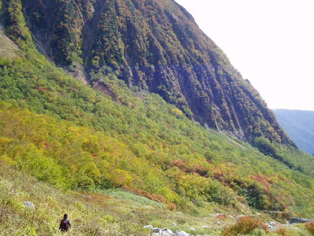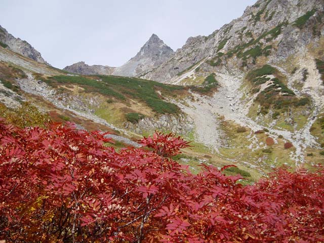 打ち合わせに、南岳小屋に出かけました。帰路槍ケ岳山荘に泊り、槍沢を下りてきま した。 上空に雲が多く寒かった昨日と変わり、快晴となり久しぶりに暖かくゆったりと歩く ことができました。 秋の陽はやわらかく紅葉の谷を、暖め、すっきりとした写真を撮らせてくれました。 夏寒かったので、紅葉は余り期待していなかったのですが、それなりに色づいて結構 見れる絵が撮れたと思います。 丸山の上の天狗原入り口の様子と大曲付近の様子を送ります。 槍ヶ岳山荘 穂苅康治