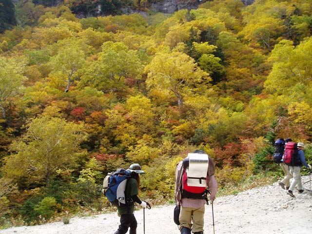 1週間遅れの情報で恐縮です。 先週土曜日(11日)の槍沢の紅葉です。 ババ平付近はまだ美しいようですので今週末も楽しめるかと思います。 13日に山荘付近には、降雪があり殺生から上には、少し残っているようです。 これからの季節は、雪が残ってきますので、アイゼンピッケルを持たれたほう が安心です。 槍ヶ岳山荘 穂苅康治