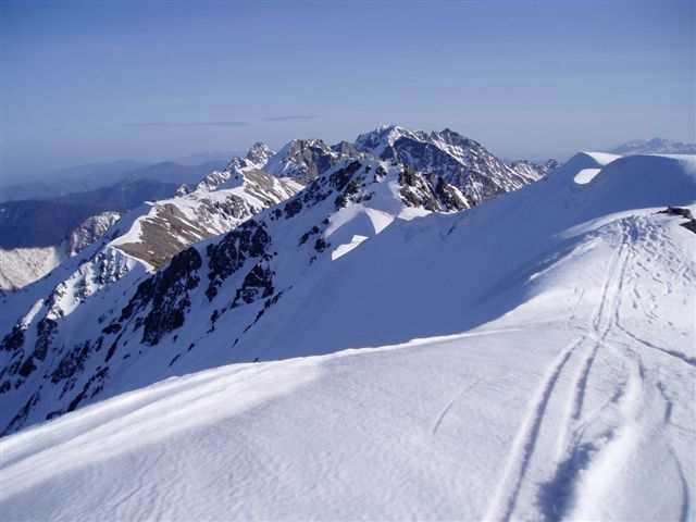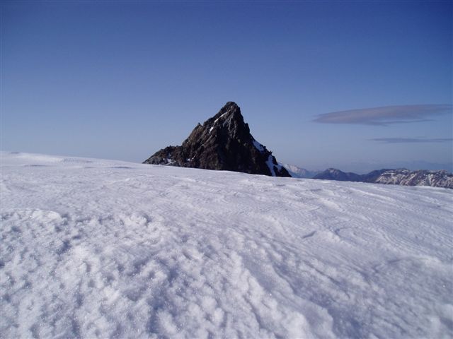 5月に入り天気もよく、今日は大喰岳まで写真を撮りに出かけました。往復1時間半 ほどの散歩ですが、夕方になり冷えてくると危ないので敢えてアイゼンをつけて出か けました。大喰岳の頂上では、祖父の採った写真のアングルを見つけたり、父の好き な撮影ポイントを見つけたりと収穫もありました。 五月の連休がいつもこんなに天気が良いと良いと思いながら、シャッターを押し続 けました。 槍ケ岳山荘 穂苅康治