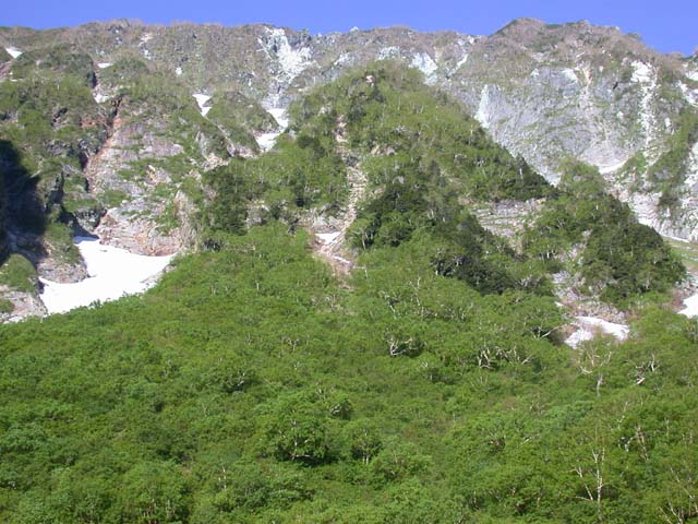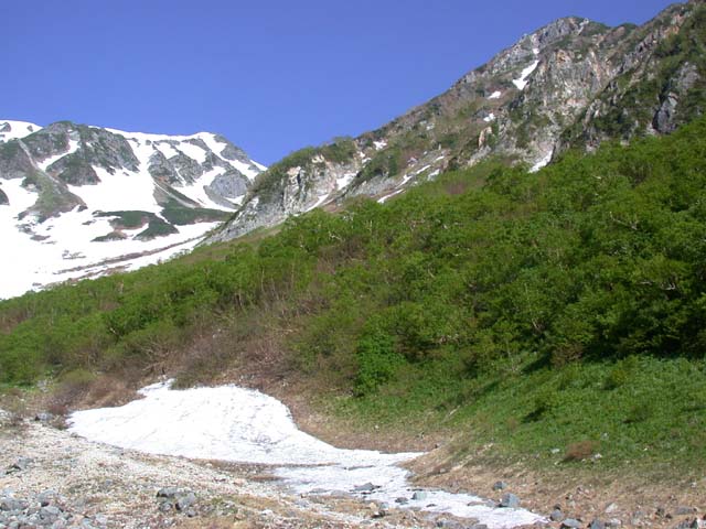 昨日、槍沢に行ってきました。 雪解けは、大分早い進み方です。 新緑も盛りとなっています。 グリーンバンドの丸山の下から雪の上ですが、上部は、夏道が使えるようになってい ます。 旧大槍小屋上部から、殺生平までは、まだ、雪が残っていますが、殺生から、槍ヶ岳 肩までは夏道が出ています。