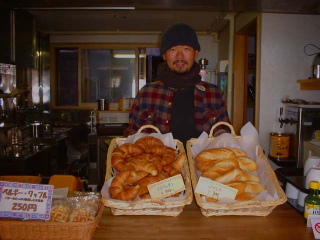 槍を眺めながらビールで乾杯はいかがでしょうか、香ばしい焼きたてパンも大好評です。