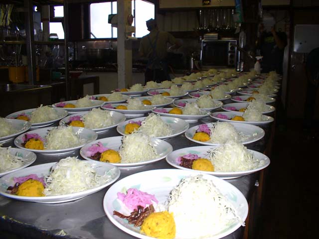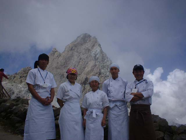 今回は槍ケ岳山荘厨房のスタッフと作業風景を紹介します。 海の日から始まる夏山シーズンの期間、厨房は大忙しです。 ご飯炊きや料理の仕込み、盛り付けなどそれぞれ分担して、200人以上の食事を毎 日用意しています。 登山者の皆さんにおいしく食べていただこうと、スタッフ一同頑張っています。 槍ケ岳山荘 山口信吉