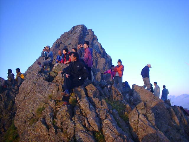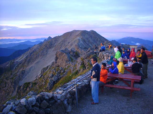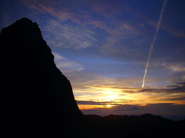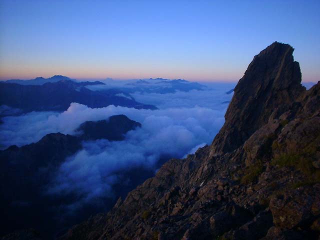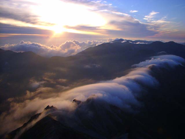 前線が南にさがり、槍ケ岳周辺はで綺麗な夕日を見ることができました。
