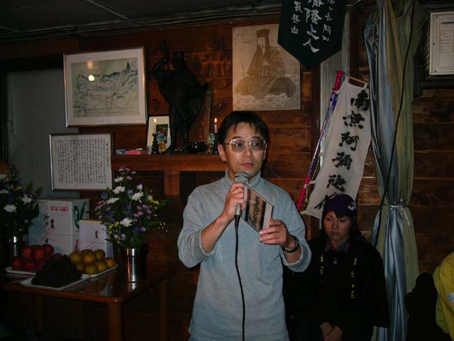 9月4日恒例の槍ヶ岳播隆祭が、槍ケ岳山荘で約200人の参加を得て開催されました。 播隆上人ゆかりの播隆奉賛会の主催する上人追慕登山の方々は、途中播隆上人が修行 された播隆窟の清掃もされて一行36人無事頂上も踏まれました。 今年も播隆研究家黒野コーキ氏をお迎えし、播隆上人のお話をお聞きしました。 槍ケ岳山荘 穂苅康治