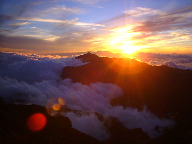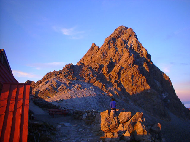 低気圧が抜けて、冷たい北風が吹く一日でしたが、午後からは遠くの山まですっきり と見えるようになりました。久しぶりに夕日がきれいに見えました。今日(6日)は 朝方と日没後の気温が氷点下となり、やっと秋が深まってきたことを感じさせます。 これからの季節、防寒具は忘れずにお持ち下さい。 槍ケ岳山荘 山口信吉