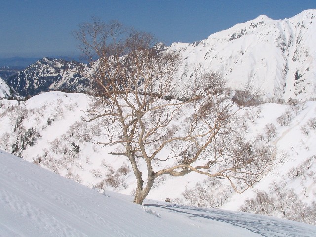 飛騨沢上部・通称:宝の木と呼ばれる大喰岳西尾根末端(標高2400m)のダケカンバ