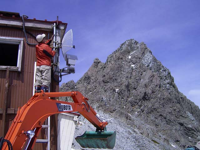 冬の間にいたんだ屋根や、機材の修理(応急手当)も大事な仕事です。