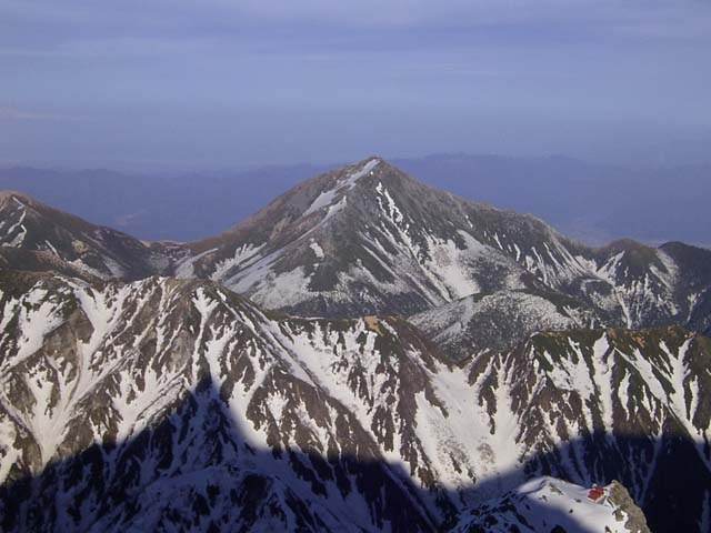 5月2日の夕刻、日没直前、槍の影が西岳にできていました。