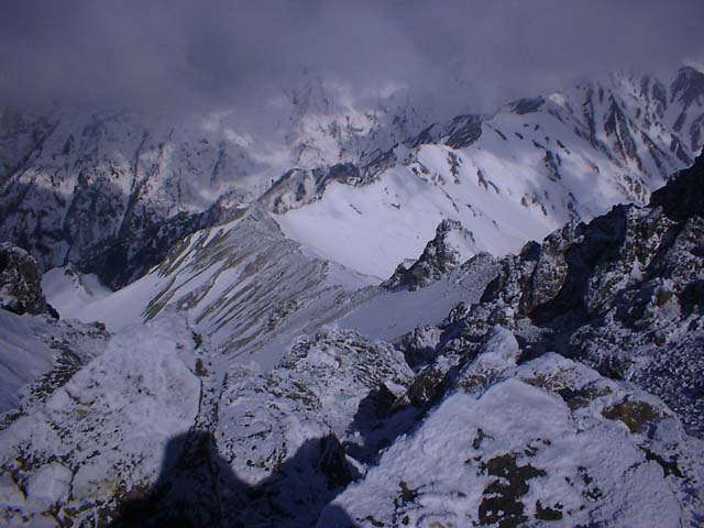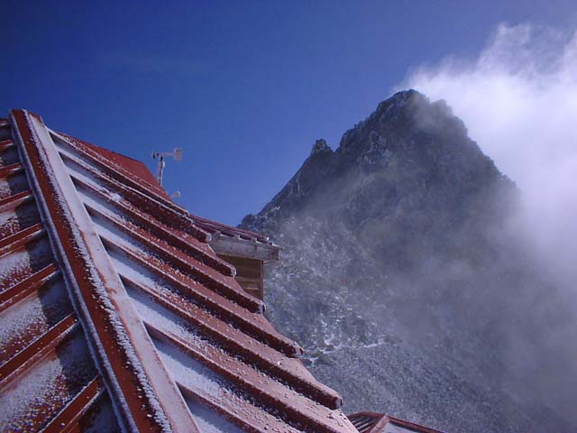 昨夜は寒気の影響で、槍ケ岳周辺は吹雪となりました。 今朝の気温は-10℃と冷え込みましたが、風が強く、体感温度は-25℃以下でしょう。 積雪は吹き溜まりで30cmくらいですが、強風のためほとんどの場所で飛ばされてし まい、稜線や沢の斜面は硬いアイスバーンです。 まだまだ、槍ケ岳は冬の厳しさを見せてくれます。 槍ケ岳山荘 山口信吉