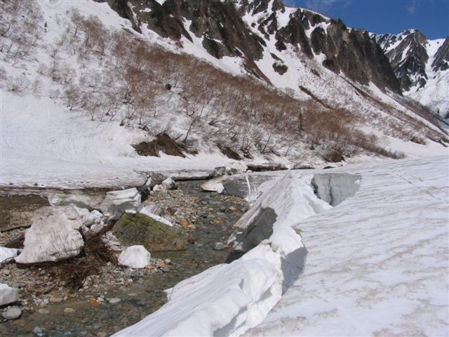 またこれからはババ平〜大曲りの沢筋の雪渓がドンドンと割れて崩れていきます。