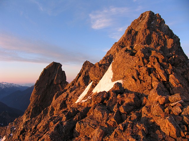 そして夕方にはきれいな夕焼けとなり、槍の穂先も小槍も赤く染まり、