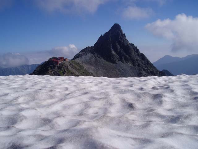 す。また、頂上からの槍ケ岳は、残雪とともに定番のカットになっています。