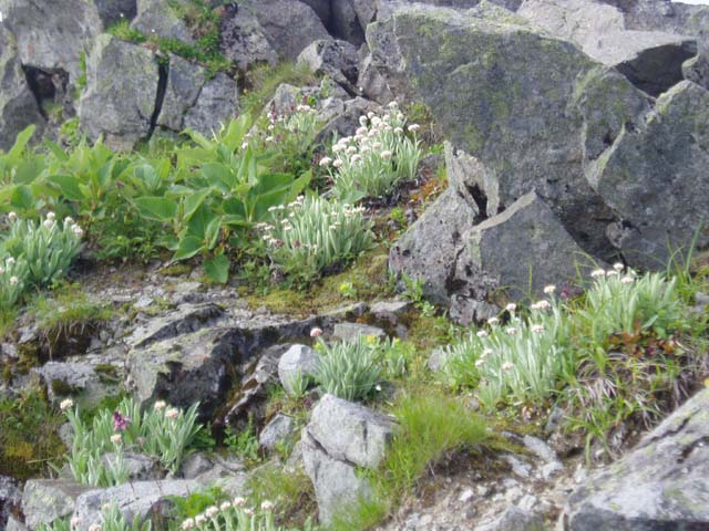 大喰岳周辺には、随所に箱庭のようなお花畑があり、槍ケ岳からの散歩には、最適で