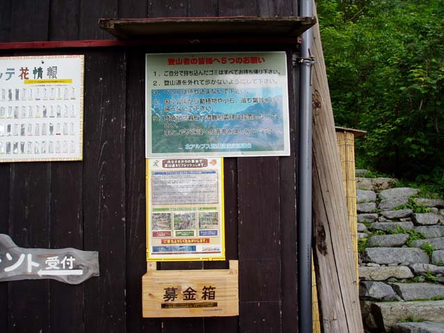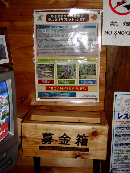 当会では、登山者の皆さんから任意の協力金を募るため、関係各山小屋に募金箱を配布・設置しました。