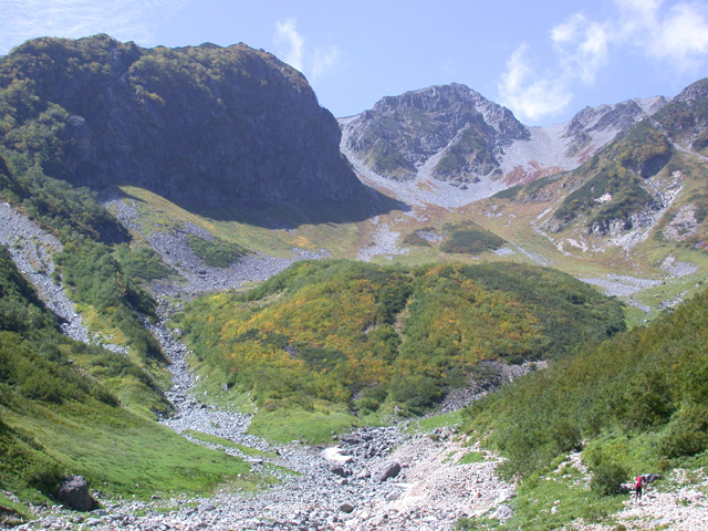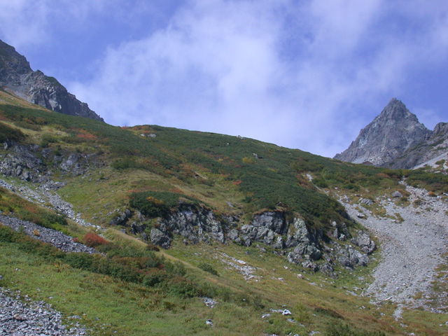 思いがけず天候に恵まれ、槍沢を上りました。槍沢もようやく色付きはじめましたが、