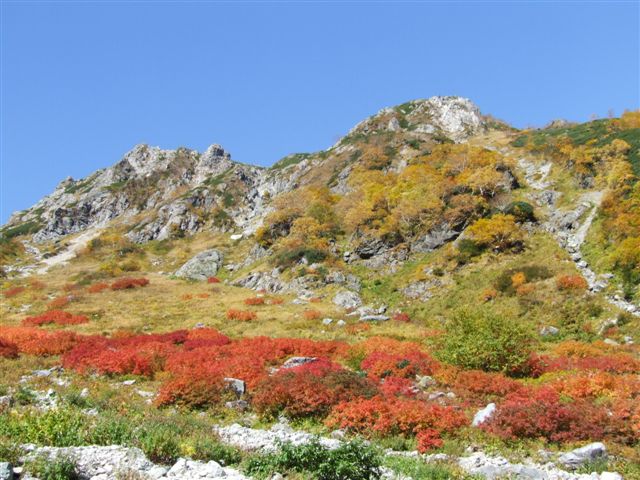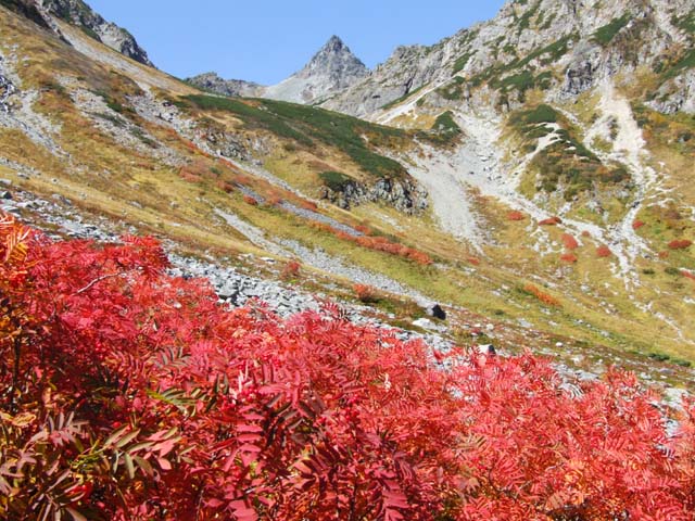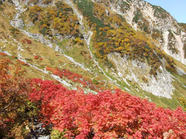 槍沢の紅葉が、盛りを迎えています。
